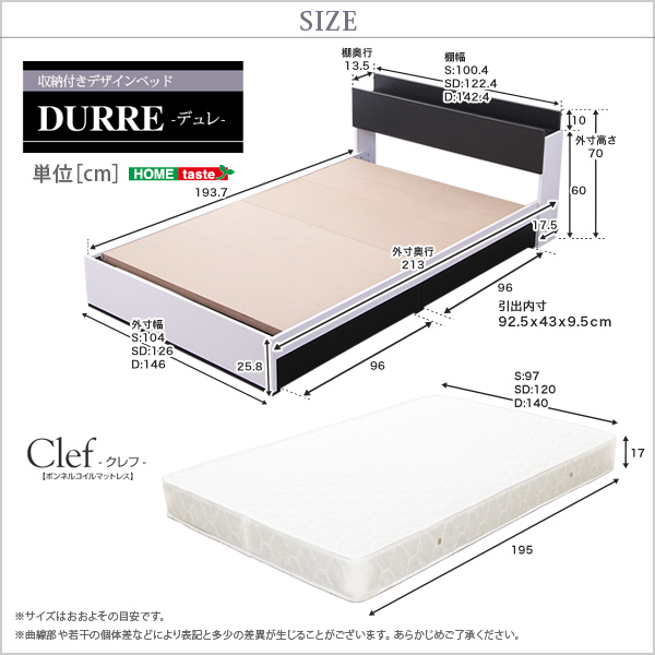 収納付きデザインベッド【デュレ-DURRE-(セミダブル)】(ボンネルコイルスプリングマットレス付き)