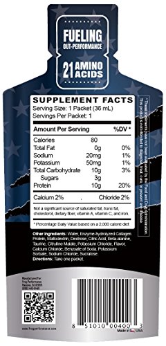 -. Feature : 10 grams of hydrolyzed collagen protein / 10 grams of carbohydrates / Electrolytes / Beta Alanine / Citruline Mallate