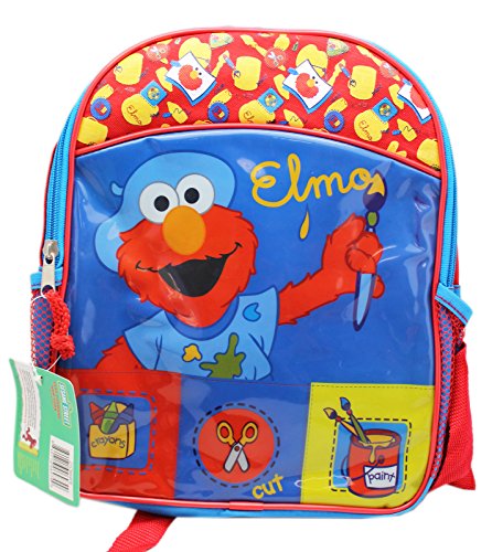 (123 Sesame)/Accessories/Luggage, Bags Travel/DIRECT FROM USA/Sesame Street Elmo the Artist Red and Blue Toddler Size Backpack (12in)