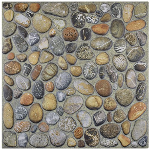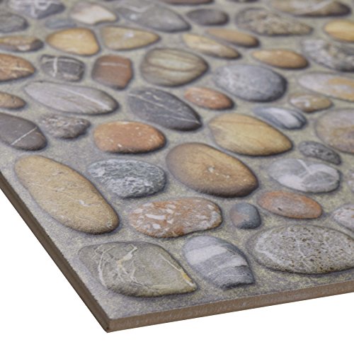 SomerTile FCG12PNI Porcenilo Pebble Stone Porcelain Floor and Wall Tile, 12.125" x 12.125", Brown/Beige/Cream/White/Grey/Black