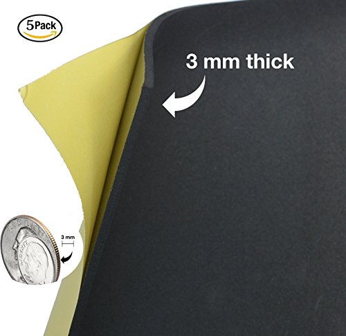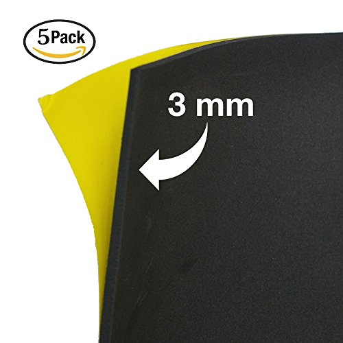 Black Self-stick Adhesive 10" x 10" EVA High Density Foam Sheets (5 Pack) 3mm by Strong Back Crafts- for canoe & kayak seats & traction pads, dog traction for cars, scrapbooking, arm & wrist rests