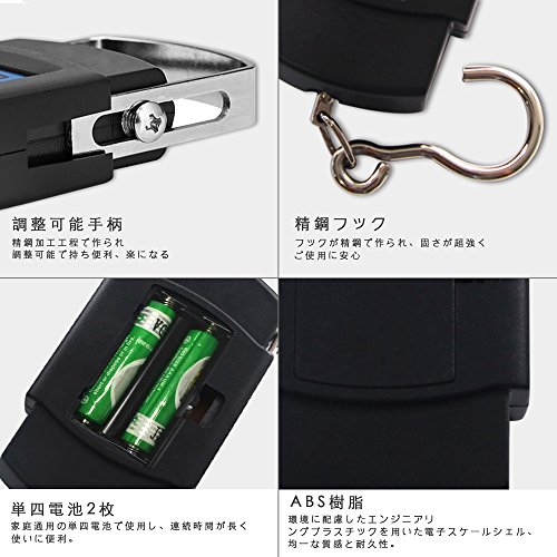 -. Feature : 毎回に電源を入れた際に、電子はかりは垂直方向にすること。 / ハンド部分をしっかり握り、測るようにし、本体を握ると、誤差が生じるおそれがある。 / 使用時に強い振動や衝撃を避けること。 / 本体はABSプラスチック素材を採用し、お手入れの際に、柔らかい布ときれいな水、或いは洗剤で洗うことができ、ベンゼン、ニトロベンゼン類溶剤、水酸化ナトリウム液体など腐食性物質の使用を控えるようにしてください。 / ,バッテリの残量は「LO」と表示された場合、素早くバッテリの交換をお勧めです。電子はかりは長期間使わない場合、バッテリを取り出し、バッテリの液漏れによる回路の損害を防げます。