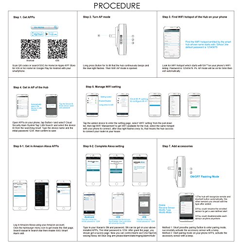 -. Feature : 【DIY installation】: DIY in 15 minutes, easy setup with your iOS or android smartphone; Download the APP : scan the QR codes in user manual, or search " SSG An home" in App store or Google play . / 【Works with Amazon Alexa for voice control】:Control your Alarm system anywhere with your ios/andriod Smartphone or tablet, you can control a single sensor, or group sensor and control them together. / 【WIFI-enabled】: WIFI-enabled cloud security alarm system, with 1 smart WIFI hub, 2contact sensors, 1 motion sensors, 1 doorbell button for you to control and monitor your home security anytime . / 【Trustable system】:The smart Wi-Fi hub is responsible for connecting with all of sensor; 2 sets wireless contact sensor and 1 PIR motion sensor detector can monitor any movement of your home. / 【Warranty】:Kindly refer the user manual before usage, welcome guide, our fan-favorite 12-month warranty and friendly customer service in 24hours.