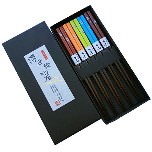- Japanese style wooden chopsticks 5 pair gift set with case for family or friend use