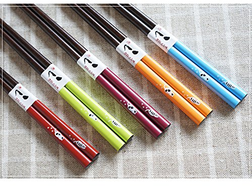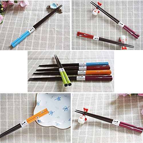 Mainiusi Chopstick Set Reusable Wooden Chopsticks with Case 5 Pairs Japanese Style Cat Pattern suit for Susi Night Asian Food Take out Theme Party