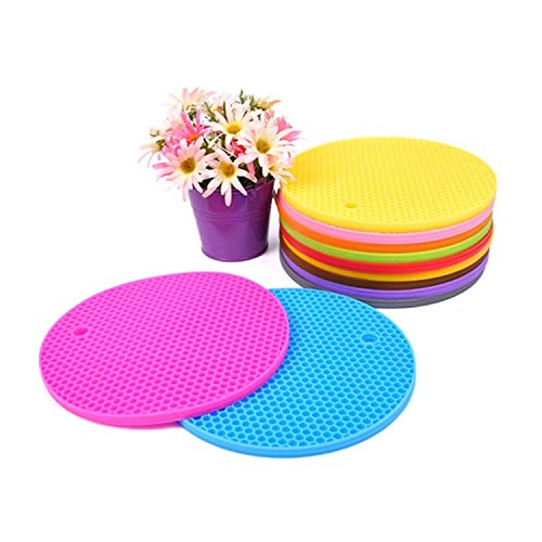 -. Feature : Material: food grade silica gel / Note: far away from the cutting tool / Size: about 18 cm / 7.09 inches in diameter, the thickness of 0.8 cm / 0.31 inches. / Product effect: thermal insulation, heat protection, prevent slippery.Protect your hands and table, to avoid scald.Recycling, low energy consumption, non-toxic,green and environmental protection.Suitable for kitchen MATS, eat mat, cup mat, cup mat mat plate.