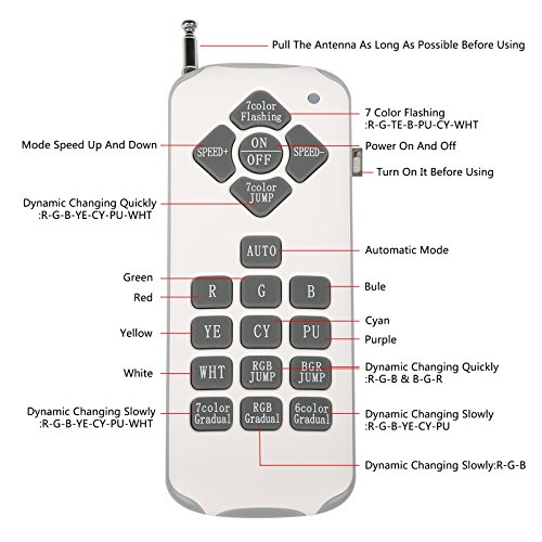 RGB COLOR-CHANGING & SWITCH / REMOTE DESIGN - With 7 fixed colors and 12 lighting models supplied through 18 Button RF Remote Control And Switch Control.You can now take complete control of all the lights in your pool at the same time(Confirm All Lamps Are Installed Correctly On The Same Switch).The backyard is sure to become the night-time hot spot you always wanted, great for parties, gatherings or events that will make the atmosphere lively and appealing to all !