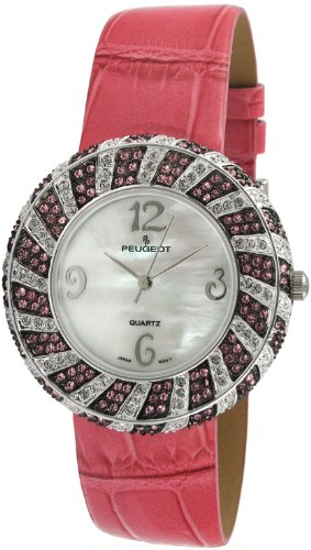 Peugeot Women's J1469PK Pink Swarovski Crystal Round Case Pink Strap Watch