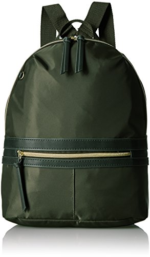 -. Feature : Nylon backpack with exposed metallic zippers, adjustable straps, and novelty pins for custom decorating / Back wall zip compartment / Inside back wall zipper