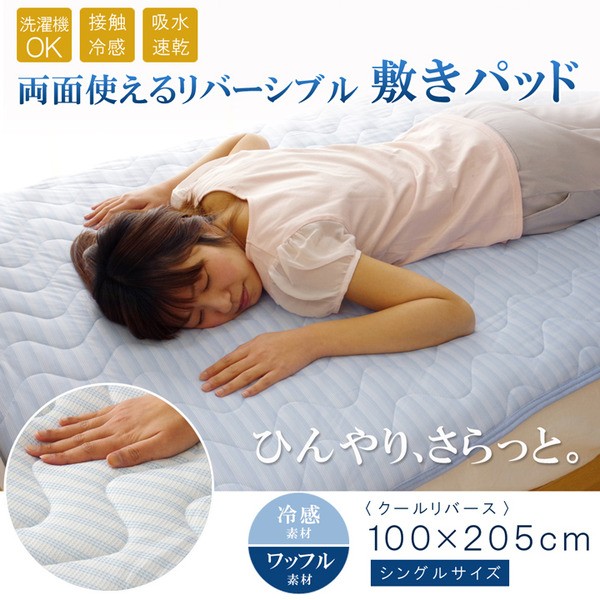 【商品名】敷きパッド シングル 洗える 冷感 涼感 接触冷感 『クールリバース 敷パッド』 約100×205cm 吸水 速乾 リバーシブル