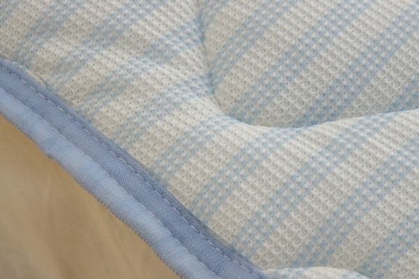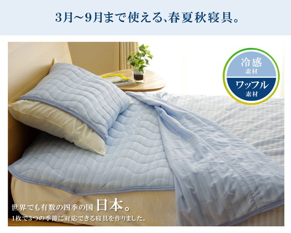 接触冷感・吸水速乾が特徴の商品です。こちらの商品は、両面使えるリバーシブル素材です。表地にはQ-MAX0.3の冷感素材を使用。裏面にはさらさらドライが特徴の吸水速乾ワッフルを使用しています。エアコンが苦手な方でも快適に。節電、節約にもつながる商品です。ズレにくいよう四隅にはゴムバンド付きです。洗濯機で丸洗いが可能なので、いつでも清潔にご使用頂けます。