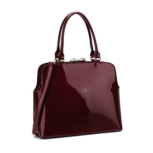 -. Feature : [Imported] This Fashion Handbag is part of MKP Collection by Maya Karis Purse(US Brand) / [Material] High quality PU leather giving it durability for long lasting use.(Our customers are at the heart of our business.Our priority is to provide them with good value products, quality service) / [Structure] 1.Patent Leather 2.Top Kiss Lock Snap Closure 3.Rolled Faux Handle 4.Flat Bottom with Studs 5.Interior back wall zipper pocket 6.Interior Open Top Pouch Pockets 7.Matching Gold-Tone Hardware, studs, and accents 8.Adjustable and removable shoulder strap 9.Fully-Lined Fabric Interior / [Approx.Size & Strap] Approx. Size: 13.5"W x 12"H x 6"D~Removable and Adjustable Shoulder Strap / [Color&Occasion] Available 5 colors fit your personal style. Perfect using in Dating,Working Place,Shopping,Traveling,Office,School or any other daily occasions.
