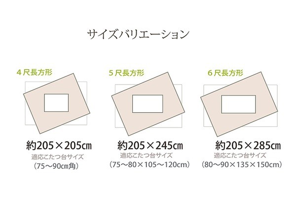 【適応サイズ】80~90×135×150cm幅のこたつ台に適応