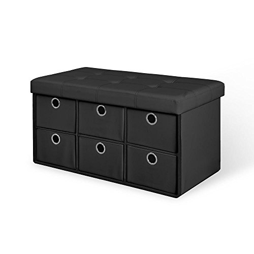 -. Title : Black Folding Storage Bench with Drawers