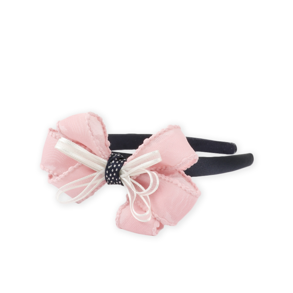 볼륨감 있게 3번 리본을 겹겹이 겹쳐 만들어 러블리 한 느낌을 한 층 업그레이드 시켜주는 아이템 입니다.