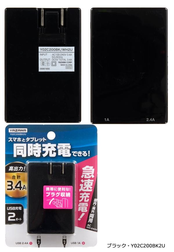 高出力3.4AタイプのUSBアダプターです。スマホとタブレットの同時充電が可能!!AC100~240V対応で海外でも使用可能。プラグが収納でき、フラットになるので本体も15mmと薄く持ち運びに便利です。 |