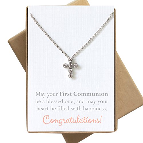 -. Title : Cross Pendant Necklace First Communion Gift, Religious Jewelry in Sterling Silver