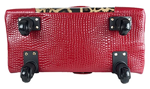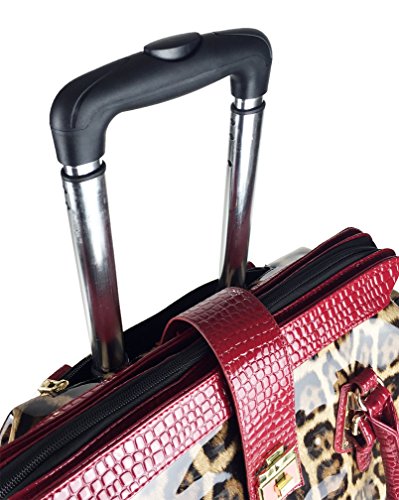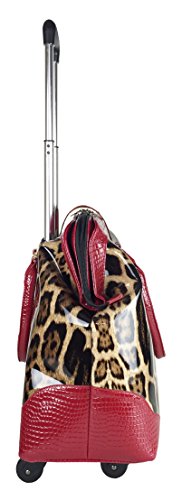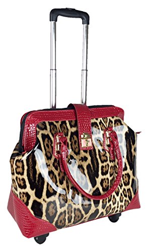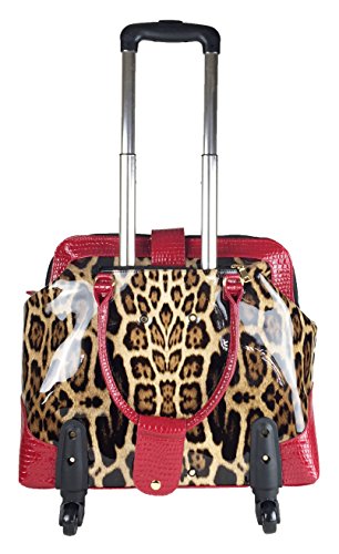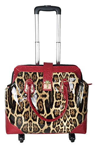 -. Binding : Electronics -. Brand : Trendy Flyer -. Color : Brown, Beige, Tan, Red -. EAN : 0746839982925 -. Feature : Color: Brown, Beige, Tan, and Red / Material: Polyurethane/ Pattern: Animal / Leopard / Size: 17" H (include wheel) x 18" L x 8" W/ Weight: 6.5 lbs / Padded laptop area can fit laptop 12" wide, 9.5" tall and 2" thick using securing velcro straps / Padded laptop area can fit laptop 12" wide, 12.5" tall and 2" thick without using securing velcro straps / Additional Info: Height From Top of Handle to Floor with Handle Fully Extended: 38" -. Label : Private -. Manufacturer : Private -. PackageQuantity : 1 -. ProductGroup : PC Accessory -. ProductTypeName : CARRYING_CASE_OR_BAG -. Publisher : Private -. Studio : Private -. Title : Trendy Flyer 17" L Computer/Laptop Carry Bag Duffel Rolling 4Wheel Spinner Lage Leopard Red -. UPC : 746839982925