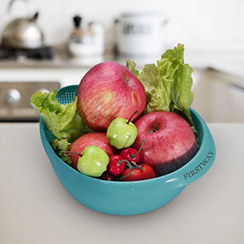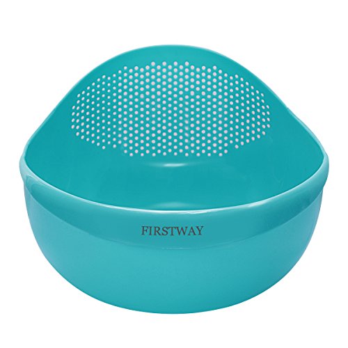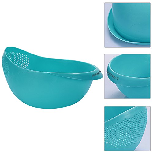 Large Kitchen Colander Rice Washer Bowl Drainer with Side and Handle in 9.84in X 7.48in X 5in FIRSTWAY Blue Color