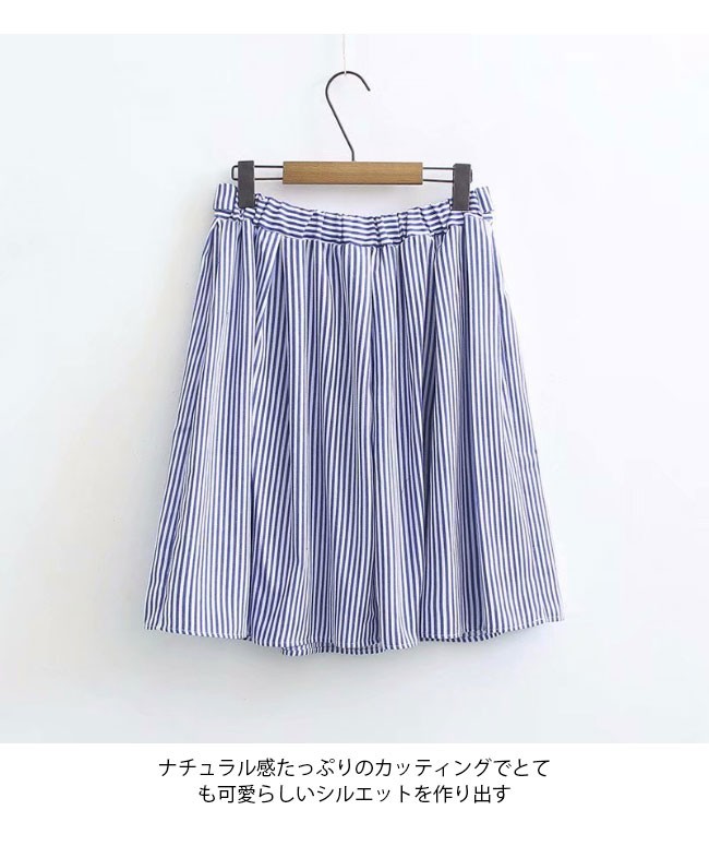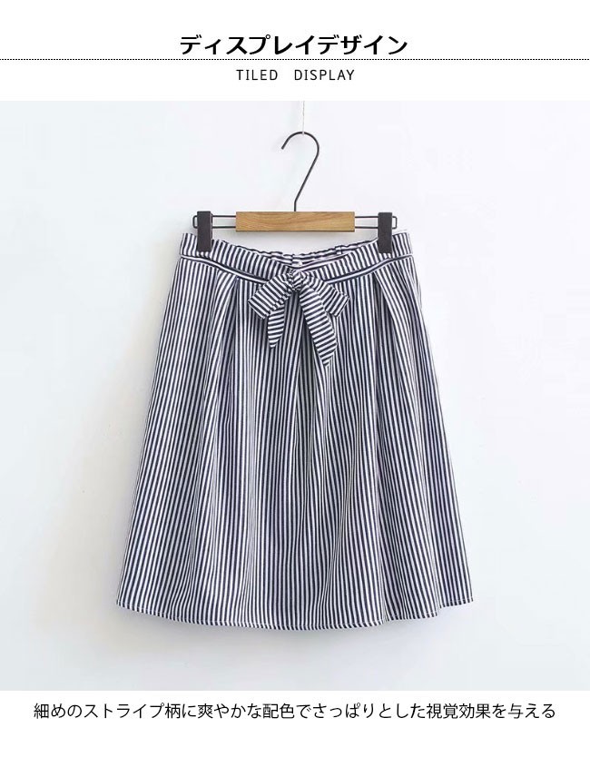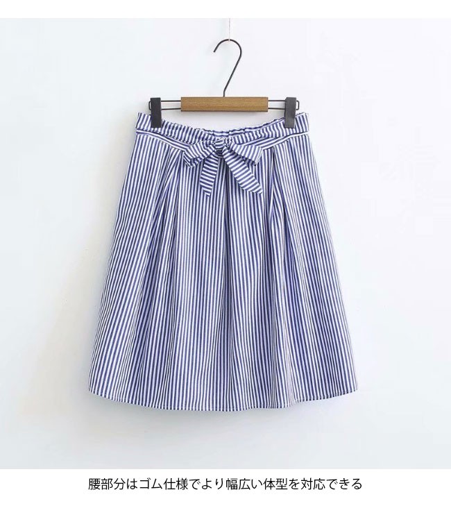 レディース 膝丈スカート 大きいサイズ ストライプ柄 ウエストゴム ベルト付き スカート ミディアム丈 Aラインスカート 女性用 ボトムス 夏物レディース用のスカートが登場細めのストライプ柄に爽やかな配色でさっぱりとした視覚効果を与えるナチュラル感たっぷりのカッティングでとても可愛らしいシルエットを作り出す腰部分に付いた蝶結びで甘さも倍増肌に優しい綿混紡素材を厳選、生地からデザインまで長閑なライフスタイルを演出腰部分はゴム仕様でより幅広い体型を対応できるカラー:ブラック ブルー素材 綿混紡サイズ(cm) XL 2XL 3XLXL 総丈57 ウエスト82-1022XL 総丈59 ウエスト86-1123XL 総丈61 ウエスト90-122ご注意:※サイズは平置きサイズです。素人採寸ですので、若干の誤差がございます、ご了承ください。
