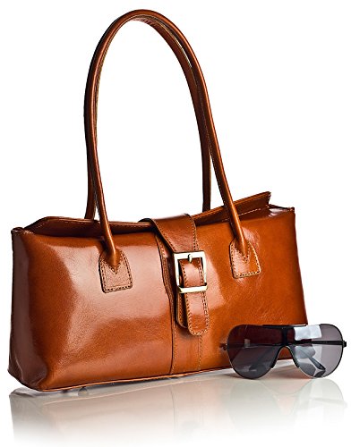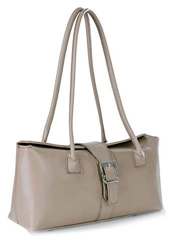 Big Handbag Shop Womens Genuine Italian Leather Buckle Detail Satchel Shoulder Bag (Light Taupe)