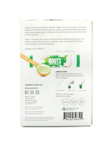 RootsTM is the best way to get your daily dose of greens & berries in a delicious drink mix to quench your thirst! It's instant guilt relief when you forgot to eat your salad or fruit for the day. We formulated Roots to be one of the best antioxidant supplements around! 20+ superfoods in every drink mix packet nourish your body on a cellular level with plant-sourced phytonutrients to help you live an energized & healthy life. The RootsTM superfoods blend includes: barley grass, apple, broccoli sprout, spinach, wheat grass, goji berry, spirulina platensis, organic pomegranate, blueberry, elderberry, acai berry, organic camu camu, noni fruit, maitake mushroom, ginseng root, organic red beet, grape seed, acerola, pumpkin, carrot, sweet potato, and fermented black garlic! And catch this: every serving of RootsTM contains a CAA (cellular antioxidant activity) of 7,200! That's a great boost of antioxidants for your body to help you feel amazing! If you're busy and on-the-go a lot, a parent who wants their kids to have sodas replaced with better nutrition, or if you just love health & wellness... ROOTSTM is for you!Feature