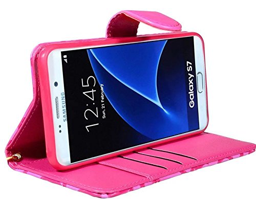 Galaxy S7 Case, Welity Floral PU Leather Flip Folio Kickstand Magnetic Wallet Purse Case with Wristlet & Credit Card Slots Cash Holder for Samsung Galaxy S7 (Rose)