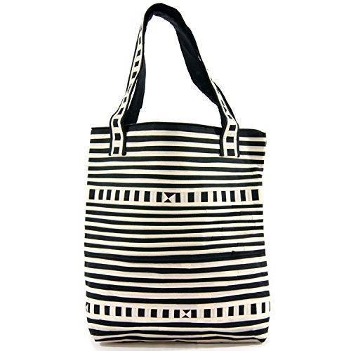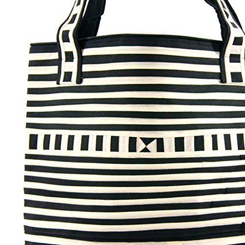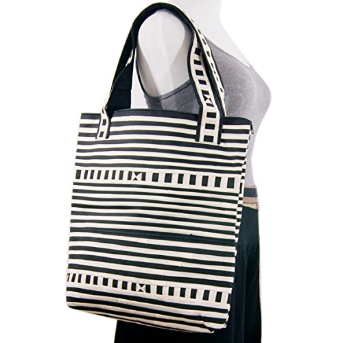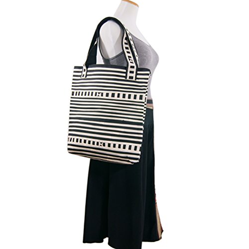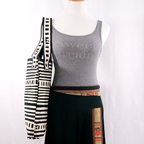 Bloomy Life Bohemian Handmade Cloth Zippered Large Tote Shoulder Bag: Black & White