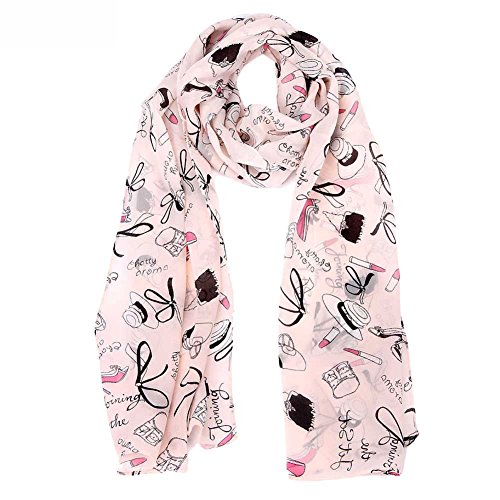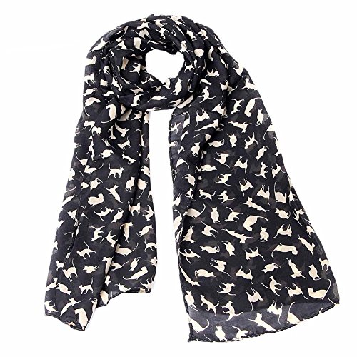 | Girl Fashion Cat Note Flower Heart Dot Printed Chiffon Long Soft Scarf Shawl |