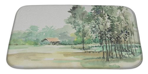 Gear New No Slip Microfiber Memory Foam Original Watercolor Painting Lovely Lilies in Vase Bath Rug Mat, 34" X 21"