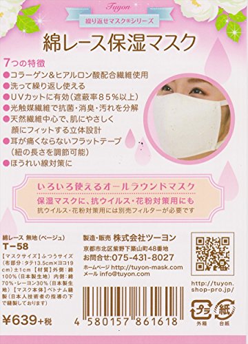 -. Title : Tuyon Moisture Cotton Lace Mask With UV Protection, Washable Reusable
