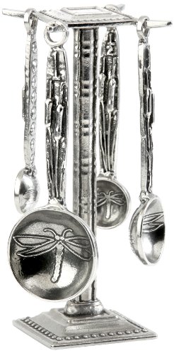 Crosby & Taylor Dragonfly Pewter Measuring Spoon Set on Pewter Display Post