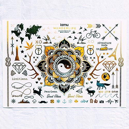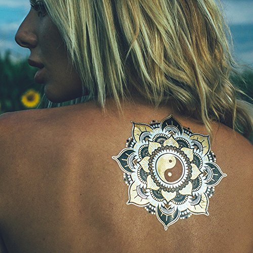 Boho Gypsy Hipster Flash Tattoos - Huge Golden Mandala - Spiritual Traveller Metallic Tattoos