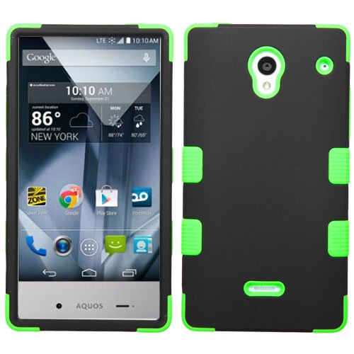 Sharp AQUOS Crystal Case, Rock Me Wireless (TM) 2 items Bundle - 24K Gold Plating Electromagnetic Waves Blocking Sticker and Triple Layers Protective Case for Sharp AQUOS Crystal. (Black / Green)