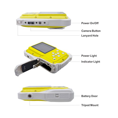 -3 m/9.8 ft waterproof, shockproof, 4X digital zoom, dust-proof, 2 inch LCD display, those functions make it a perfect gift for your boys and girls' outdoor fun.