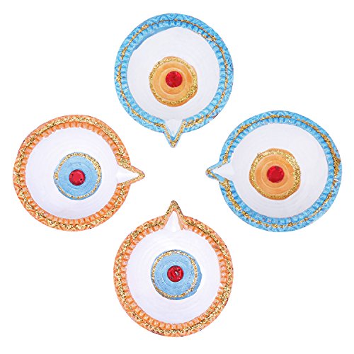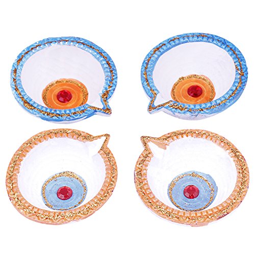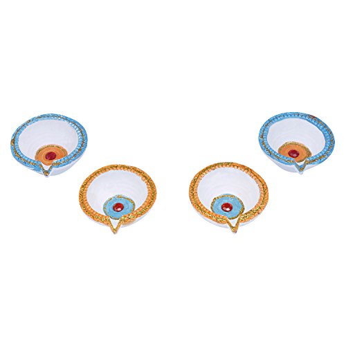 Set of 4 Diwali Diyas Colorful Earthen Oil Lamps Tea Light Holders Home Festive Decorations