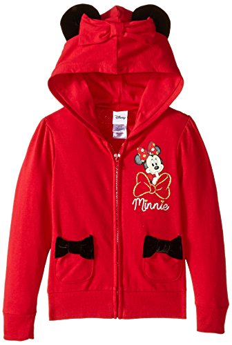 Disney Little Girls' Minnie Long Sleeve Hoodie, Rocker Red, 5