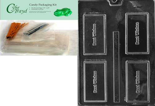 Cybrtrayd "Best Wishes" Business Card Chocolate Candy Mold with Packaging Bundle of 50 Cello Bags, 25 Gold/25 Silver Twist Ties and Chocolate Molding Instructions