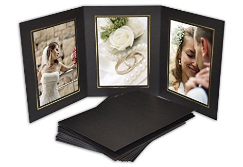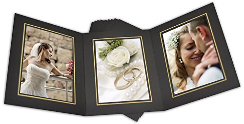 Golden State Art, Cardboard Photo Folder For 3 5x7 Photo (Pack of 50) GS005 Black Color