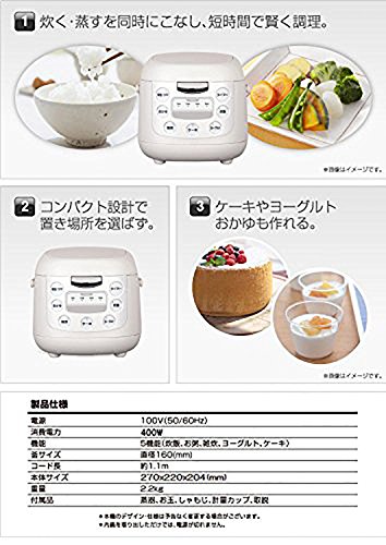 機能:5機能(炊飯、お粥、雑炊、ヨーグルト、ケーキ)