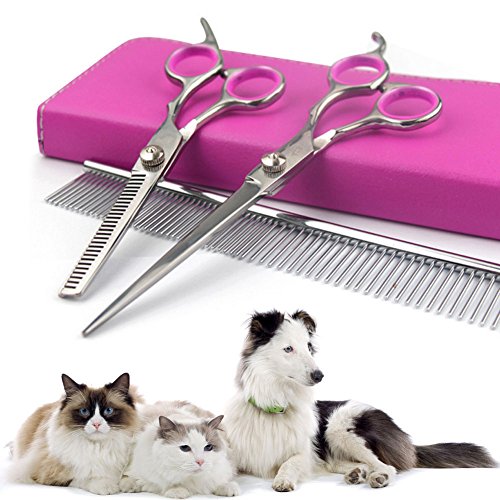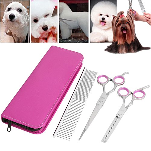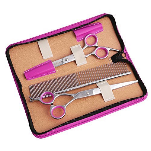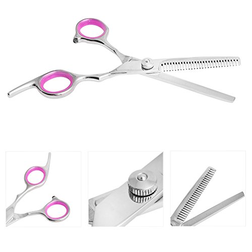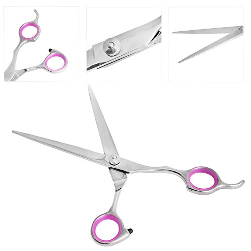 100% brand new and high quality All the cutting tools come with razor sharp edges which help in the detailing aspect as well. All the scissors comes with a finger rest for enhanced comfort which is effective when in longer use. The finger rings coming with this product and also the handles are nicely contoured to provide the maximum comfort. This product guarantee the hardness and durability Material: stainless steel Color and size:Pink ring?2.00cm/0.79"(diameter) Case Size:(L*W*H)22.00*8.50*2.50cm/8.66"*3.35"*0.98" Scissors length:20.00cm/7.87" ;17.00cm/6.69" Comb Size:(L*W)19.00*3.50cm/7.48"*1.38" Quantity:1Set ????? Scissors maintenance instructions Please don't cut the air. High quality steel, high sharpness, when you use the scissors,you must pay attention to safety. Please keep it clean after using,can lubricated if necessary. Please be careful with the scissors,don't drop from high level,this will destroy marginal adaptation of the scissors. Don't use them to cut metal objects.The scissors can only be used for hair trimming, otherwise it will shorten the life of using. ???????? Note: Size for manual measurement, there may be a 0 to 2 cm error, belongs to the normal phenomenon. And due to the difference between different monitors, the picture may not reflect the actual color of the item. Thank you! Package includes: 2Pcs x Scissors 1Pc x Comb 1Pc x Scissors Case 0