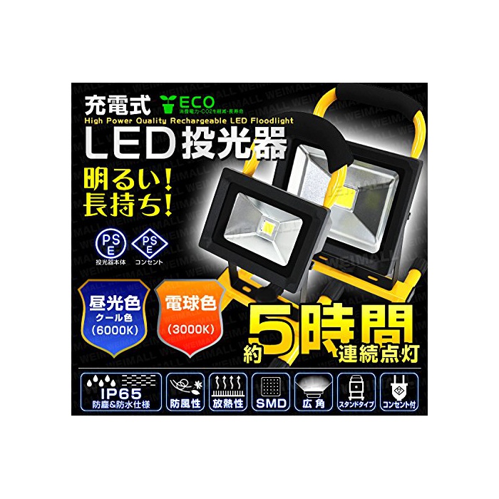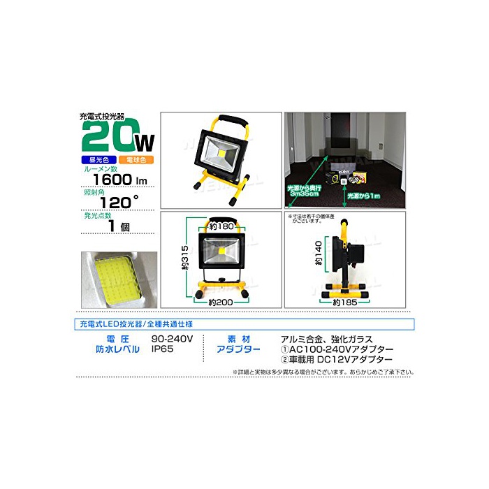 원본상품명: 20W 充電式 LED投光器 ?光色 (約6500K) 防水 5時間稼?