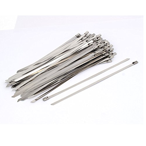 uxcell 7.9 Inch 304 Stainless Steel Self Locking Cable Ties Silver Tone 100pcs