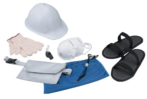 세트내용: 헬멧,마스크2매,플라스틱제 대형 whistle,면제 목장갑,플라스틱 씨트 들어감 방재용 슬리퍼,초박형 설계 귀중품용 파우치,유첨부(부) 메쉬 수납대