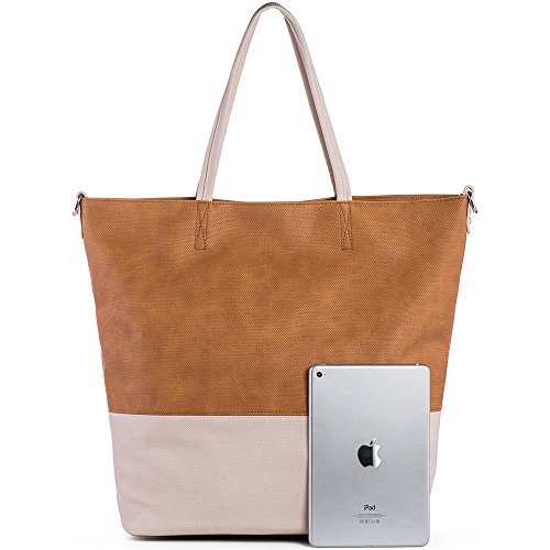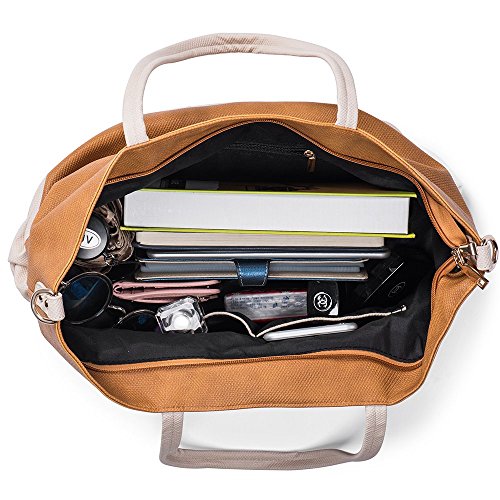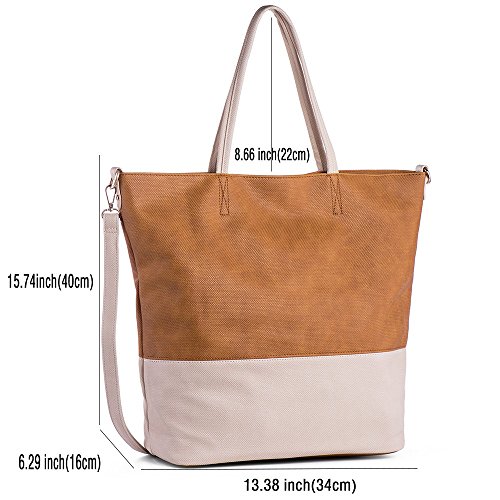 -. Feature : [MATERIAL]: High quality soft PU leather women shoulder tote bags; durable, fashionable and easy to carry. / [CLOSURE]: Top zipper closure / [MULTI POCKETS]: 3 Pockets(1 x interior zipper pocket + ,2 x interior open pockets) / [SIZE]: [13.38 at bottom (17.71 at top) x15.74 x6.29 ] (L*H*W) in]. Weight: 1.87 pounds. Handle Drop Length: 8.66in / [LARGE CAPACITY]: This bag can keep the wallets, umbrella, iPad, mobile phones, A4 books and so on.