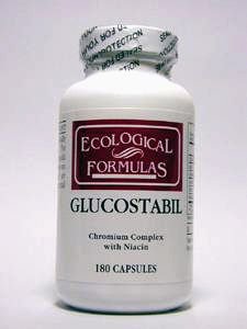 Studio : ECOLOGICAL FORMULAS Publisher : ECOLOGICAL FORMULAS Binding : Health and Beauty Product Description Glucostabil 180 caps Ingredients: Alanine 125 mg Pectin 300 mg GTF containing: Chromium 50 mcg Glutathinone Complex 60 mg Niacin 15 mg Pectin source is apple Suggested Use: 2 caps before meals, or as directed by a physician. 0