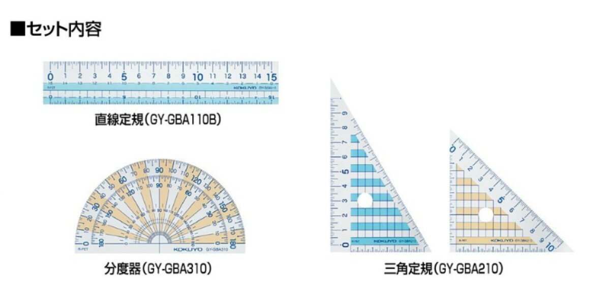 The Kokuyo ruler set Manabi be and straight ruler triangle ruler with protractor set a special case GY-GBA501