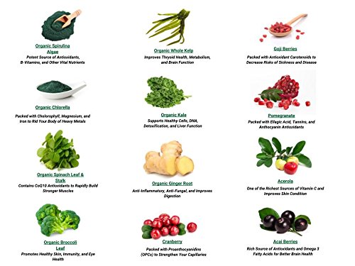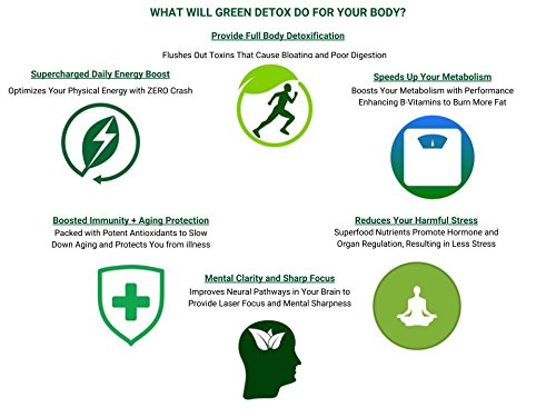 -. Feature : Full Body Detox - Studies have shown that certain nutrients such as antioxidants may support the flushing out of these toxins / Daily Energy Boost - Naturally occurring phytonutrients, chlorophyll and enzymes can help boost energy, stamina, mineral replenishment / Metabolism Support - B Vitamins can help the body metabolize proteins, fats and carbohydrates / Stress Reduction - The full spectrum supply of superfood nutrients supports hormones and vital organs within the body for maximum efficiency, and less stress. / Mental Clarity - As energy improves at the cellular level, so too does the neural pathways that allow for improved focus and mental sharpness