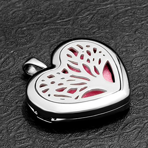 Third Time Charm Heart Aromatherapy Essential Oil Diffuser Necklace Family Tree Of Life Locket, 6 Refill Pads