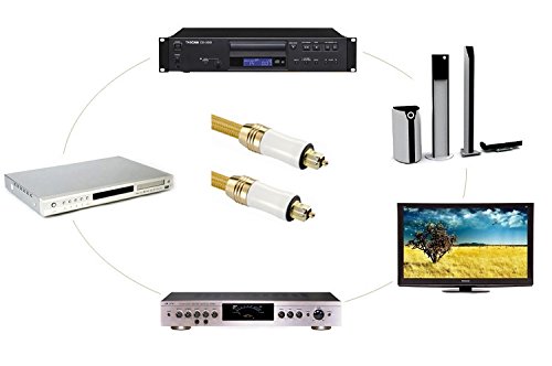 Heavy duty Toslink audio cable connects Blu-ray players, satellite DVRs, computers, DAT recorders, game consoles, or other audio devices with a digital optical interface (S/PDIF) to your AV receivers